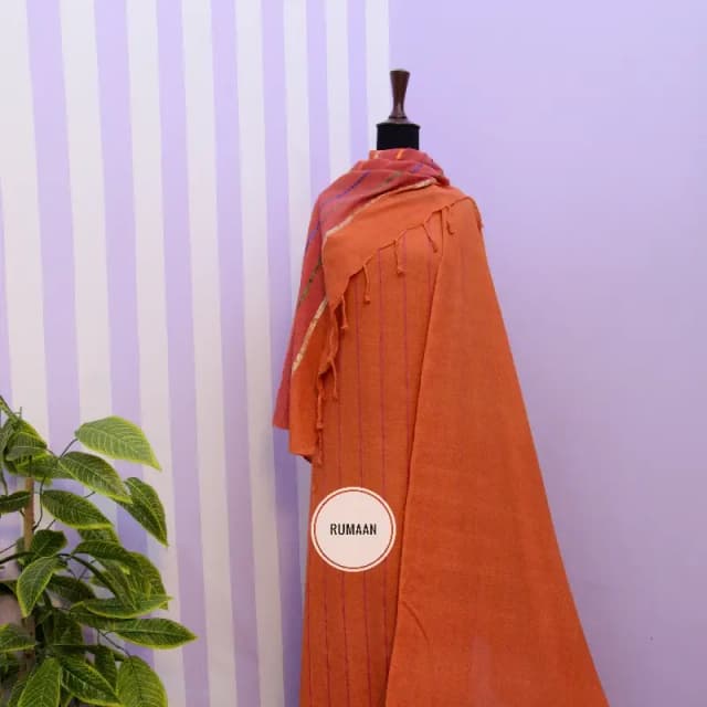 Hand woven organic cotton saree with silk yarn 6 yards. Jamawar blouse 1.5 yards. Delivery takes 8 to 14 days